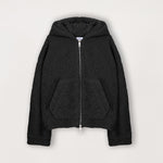 Cut with dropped shoulders and a loose, easy drape. Finished with a two-way zip, kangaroo pockets, and internal drawcords at the hem for optional adjustment.