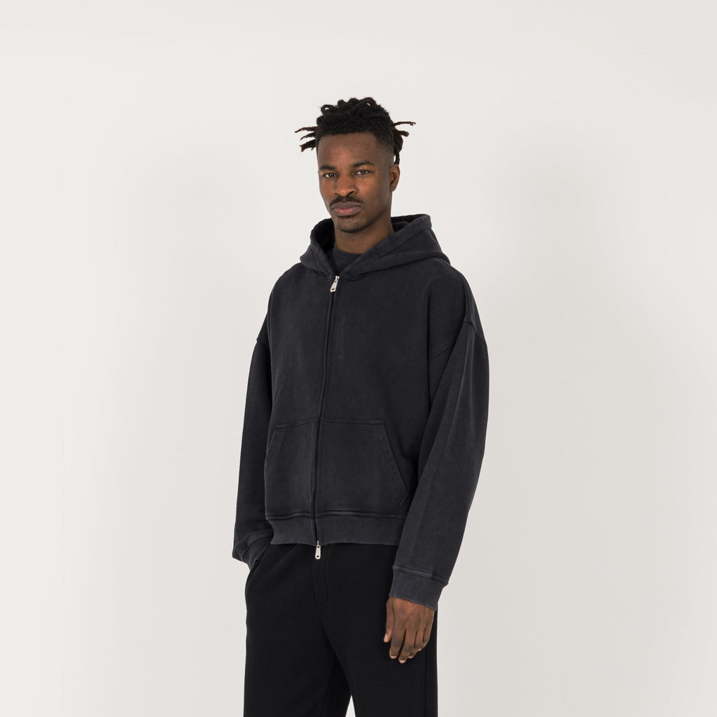 Cropped Zip Hoodie - Vintage Black