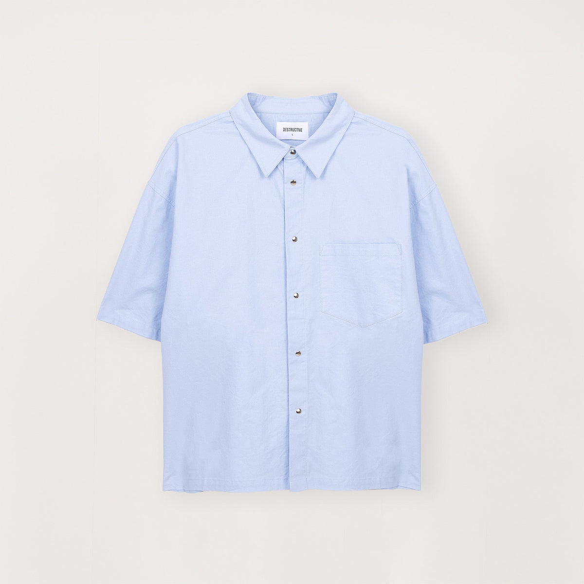 Crafted from 100% cotton, this short sleeve shirt is cut with a boxy silhouette. Cropped in length and finished with subtle press-stud fastenings, it’s designed to feel elevated yet effortless — whether worn buttoned up or layered open.