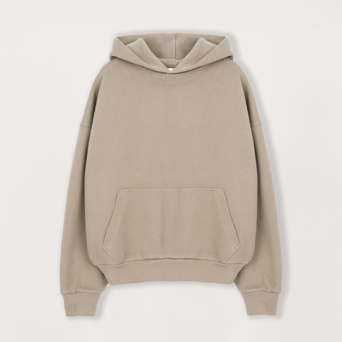 Dropped shoulders and a boxy body create a clean, structured drape with intentional volume. Finished with a tightened waistband and kangaroo pocket, the hoodie sits easy on the frame while still holding its shape.